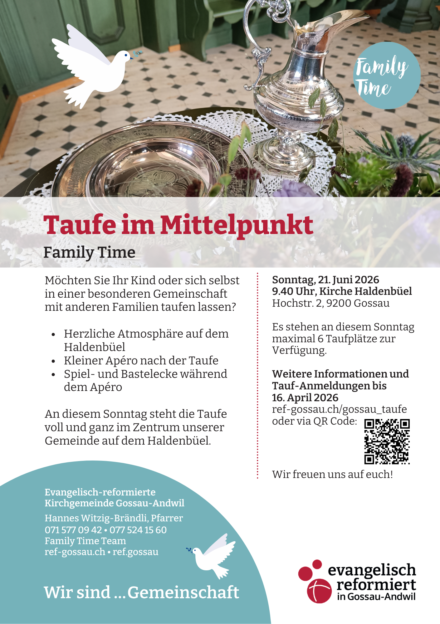 Diese Verbindung zu Gott kann uns weiter durchs Leben geleiten und uns Orientierung geben. Deshalb verpflichtet uns die Taufe auch. Eltern, Taufzeugen und Gemeinde übernehmen die Verantwortung, dem Kind den christlichen Glauben zu zeigen, ihm seine Schätze zu öffnen und die Traditionen verständlich zu machen. Vor allem die Eltern sind da gefordert, deshalb sollte auch ein Elternteil Mitglied unserer Kirche sein. Wir unterstützen sie dabei mit verschiedenen, dem Alter entsprechenden Angeboten: Fiire mit de Chline, familienfreundlichen Gottesdiensten, Jojo, Sommerlager, Schülergottesdienste, Unterricht...