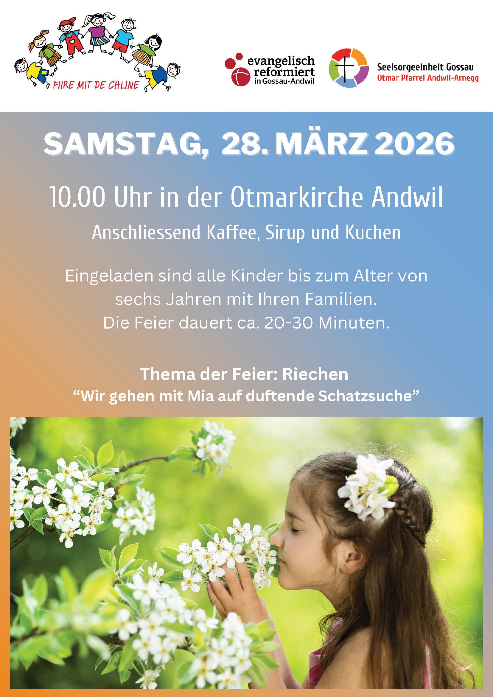 Ökumenischer Kinder-/Familiengottesdienst für Kinder bis ca. 6 Jahre sowie ihre Eltern und Grosseltern. Anschliessend Kaffee und Sirup im Otmarzentrum.
